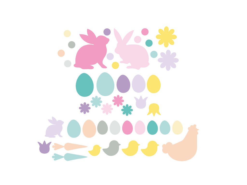 Vajíčka, slepičky, kuřátka, králíčci, tulipány a jarní kytičky. To vše jako velikonoční dekorace do interiéru v podobě krásných trendy veselých samolepek. Velikonoce mají být veselé a s těmito samolepkami na sklo a zeď určitě budou.
