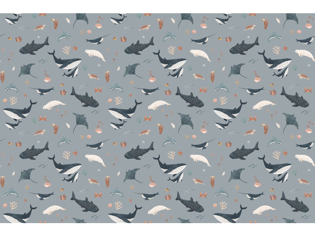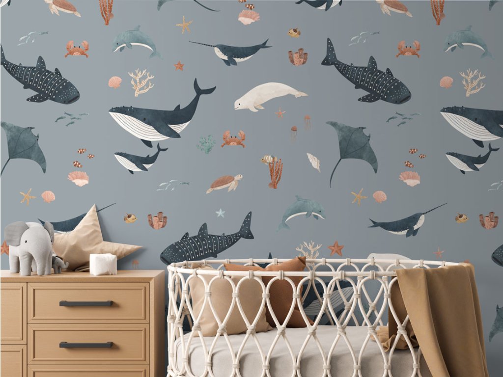Ponořte se do podmořského dobrodružství s tapetou, která zobrazuje nádherný svět oceánu plný velryb, delfínů, rejnoků, krabů a dalších mořských tvorů. Tento design přináší do dětského pokoje klid a krásu podmořského života, ideální pro vytvoření harmonického a inspirujícího prostoru. Tapeta je skvělá volba pro děti, které milují moře a jeho tajemství. Vyrobena z ekologických materiálů, je snadno omyvatelná a odolná, což zaručuje její dlouhou životnost a snadnou údržbu.