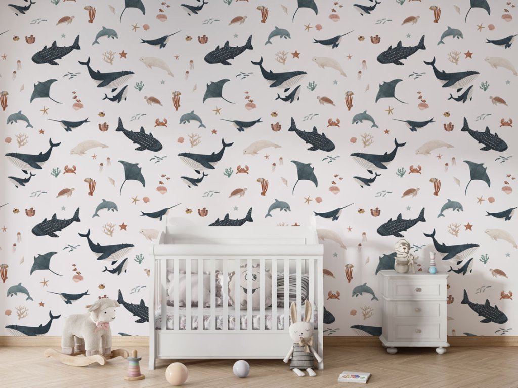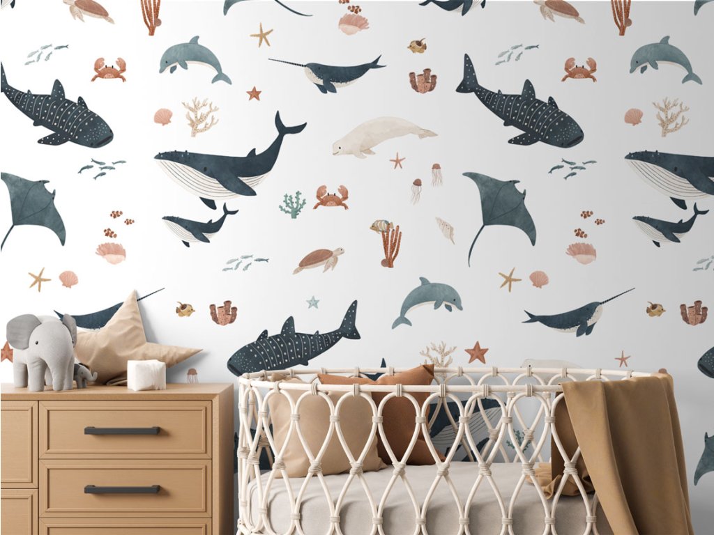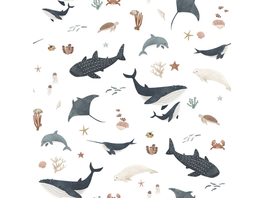 Objevte klidný a inspirativní podmořský svět s tapetou, která zobrazuje majestátní velryby, delfíny, rejnoky, kraby a další fascinující mořské tvory. Tento jemný design přináší do dětského pokoje harmonii a klid, který podporuje dětskou fantazii a zájem o přírodu. Tapeta je ideální pro malé milovníky moře, kteří se chtějí každý den ponořit do pohádkového světa oceánu. Ekologická, snadno omyvatelná a odolná, je perfektní volbou pro rodiče hledající krásné a udržitelné řešení pro dětské pokoje.