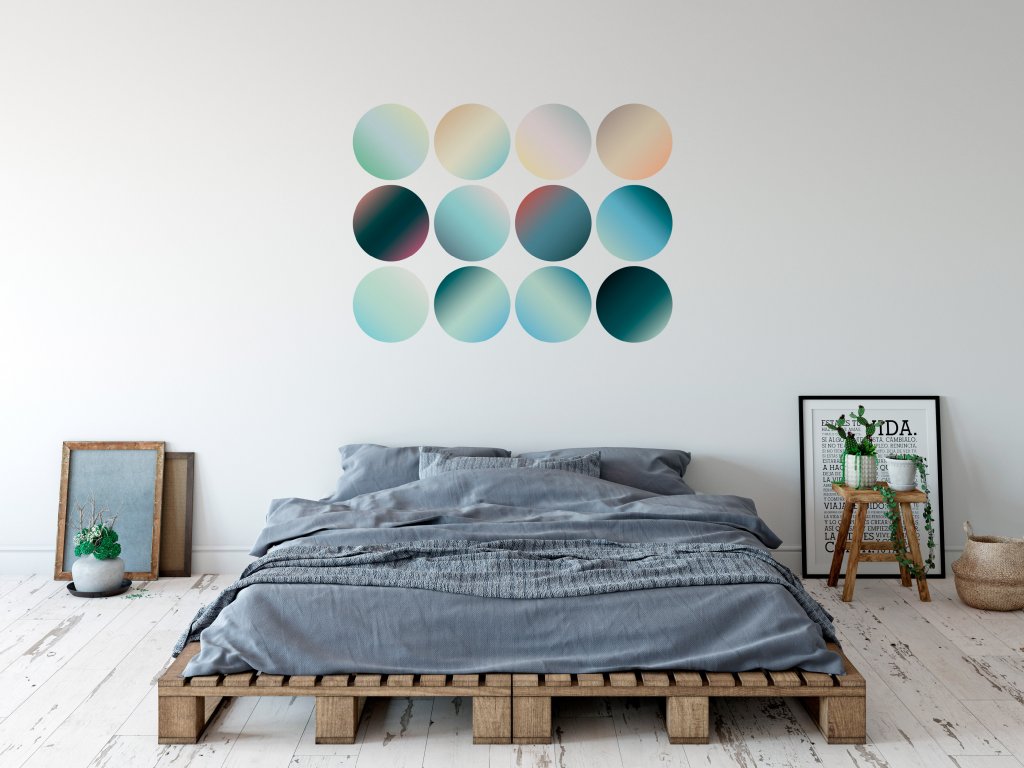 Tuto jedinečnou dekoraci jsme nazvali Dvanáct do tuctu. Hodí se do moderních interiérů, vstupních hal, nebo zasedaček a relax zón.