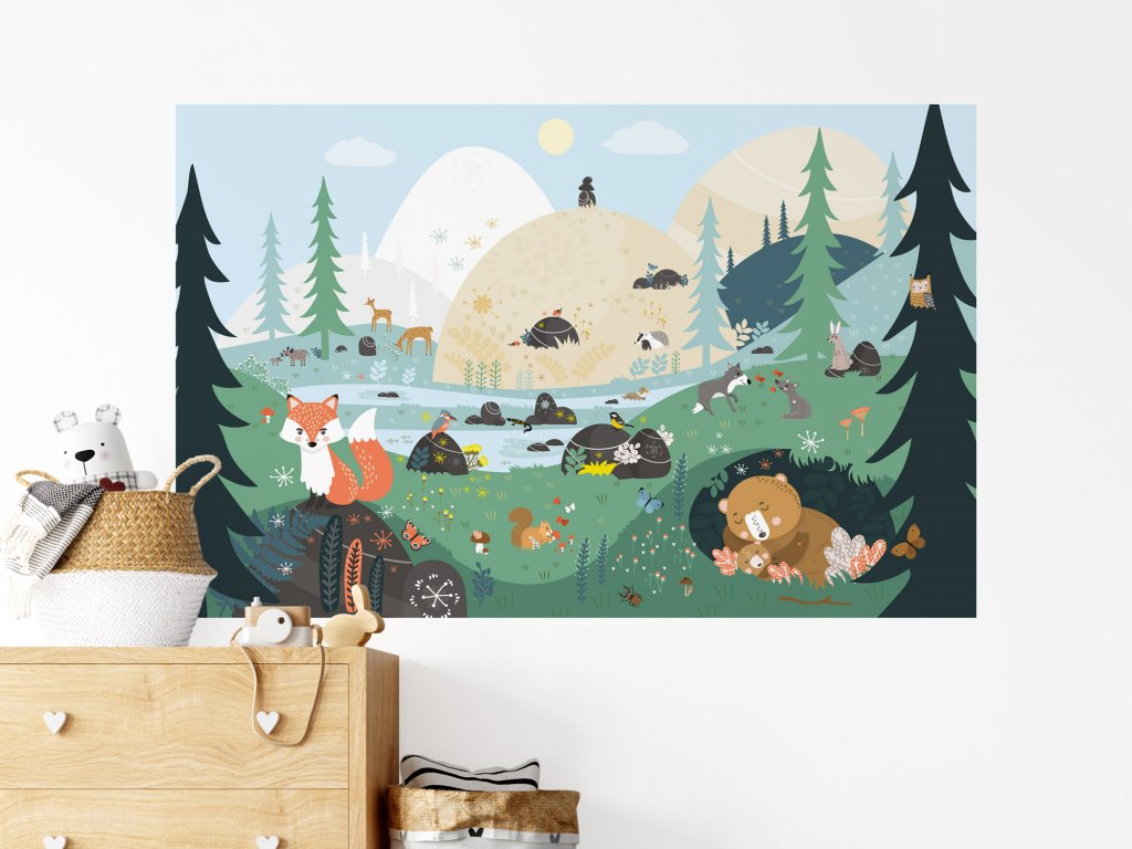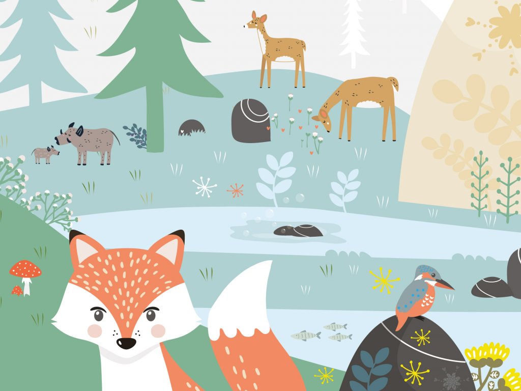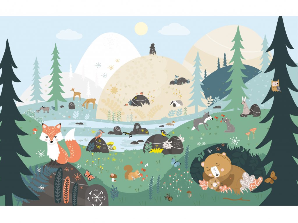 Plakát s motivem lesa Krakonošova zahrádka je plná zvířátek z našich lesů. Najdete na ní třeba lišku, medvěda, sýkorku, ledňáčka, jezevce, srnky, jelena, sovu, kachničku, zajíce, vlky, veverku, motýli, brouky a spousty kytiček, kytek, listí, kapradí, jezírko, potůček, smrky, stromy zkrátka všechno, co je v lese.