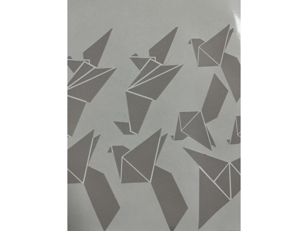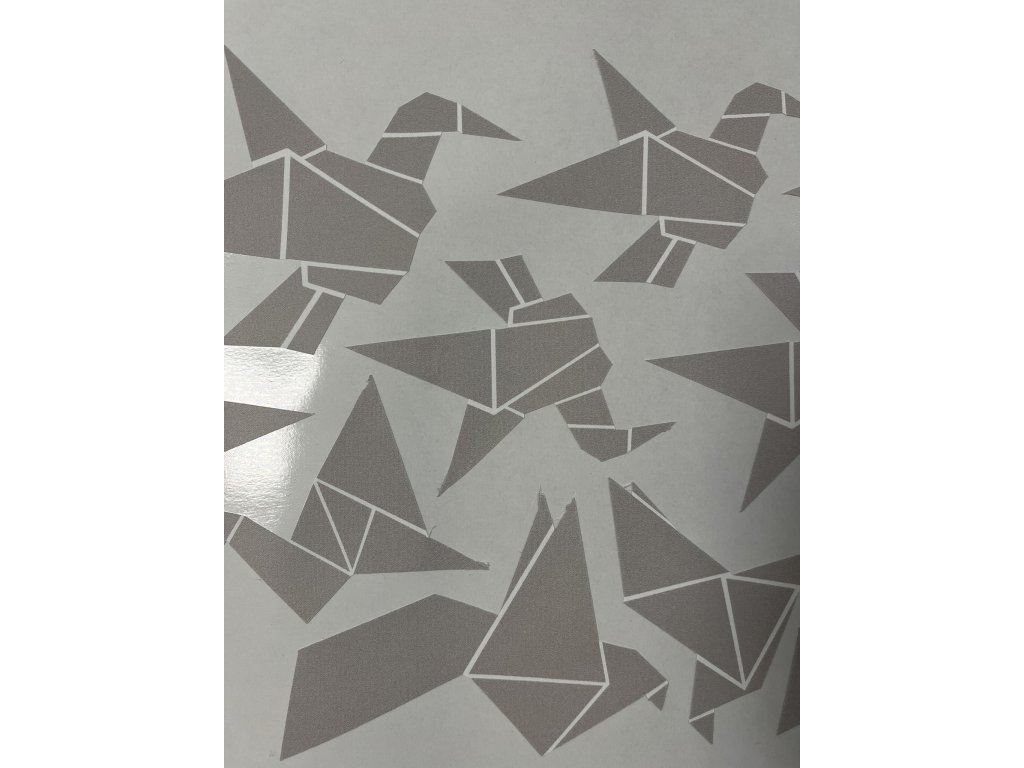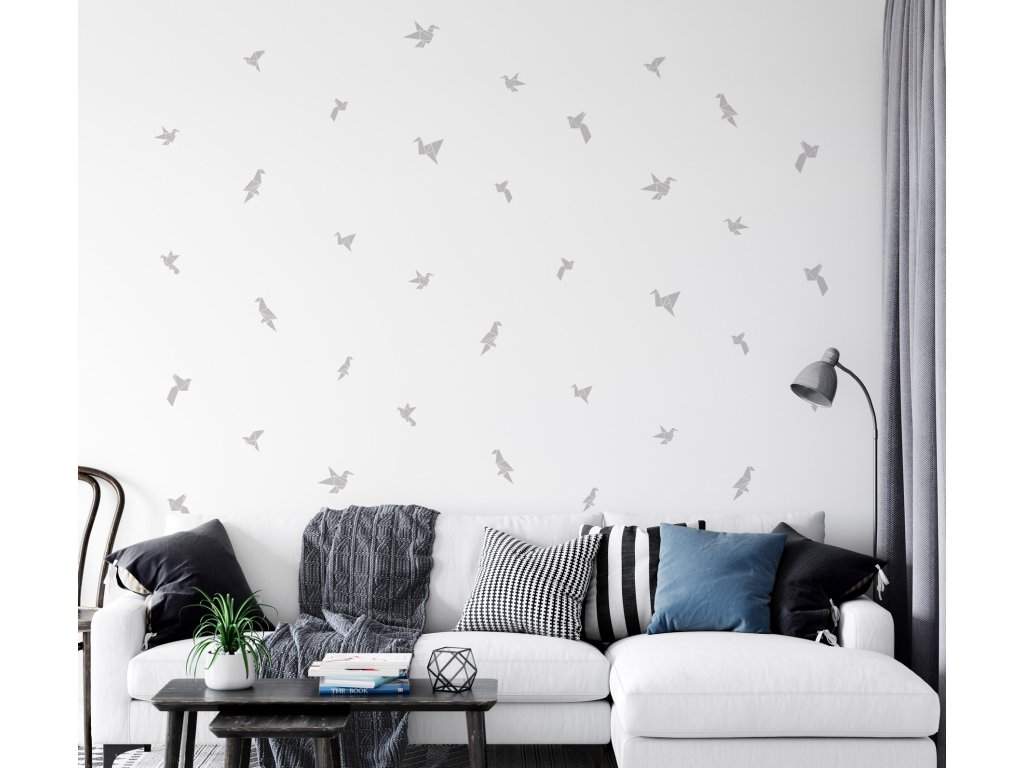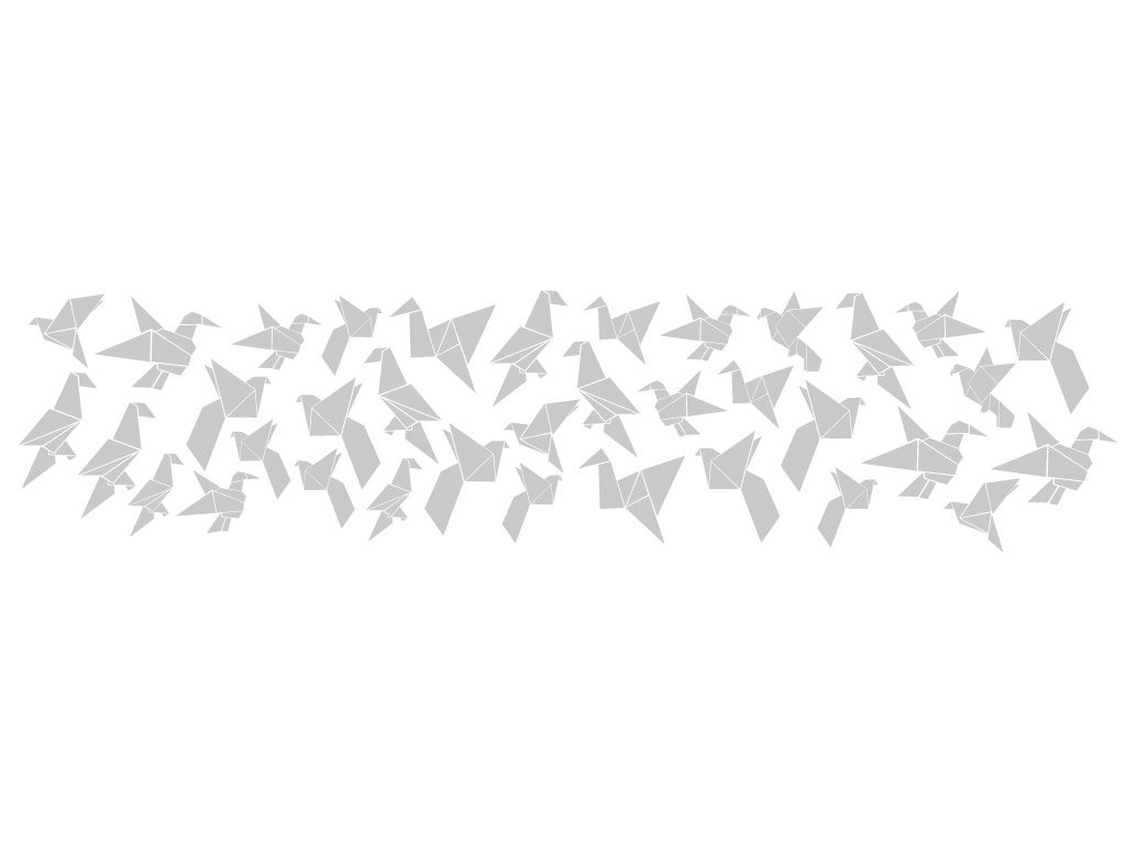 Motiv Origami lze přizpůsobit velikosti zdi! Buď rozložením (mezery mezi segmenty), nebo počtem použitých samolepek.
