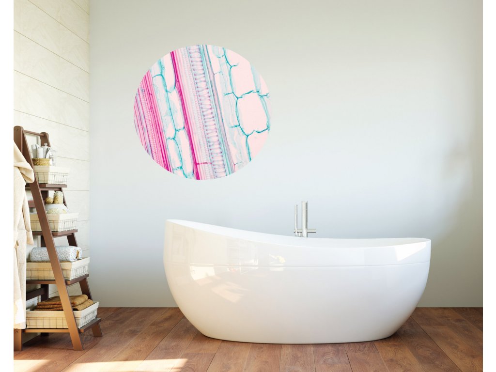 PINK - IN jemný dekorativní samolepicí kruh na zeď, navozuje pocit klidu a energie. Interiéry v odstínech světle šedé, modré a tyrkysové, či jiných pastelových barvách, jemně a přitom originálně doplní tento samolepicí kruh.