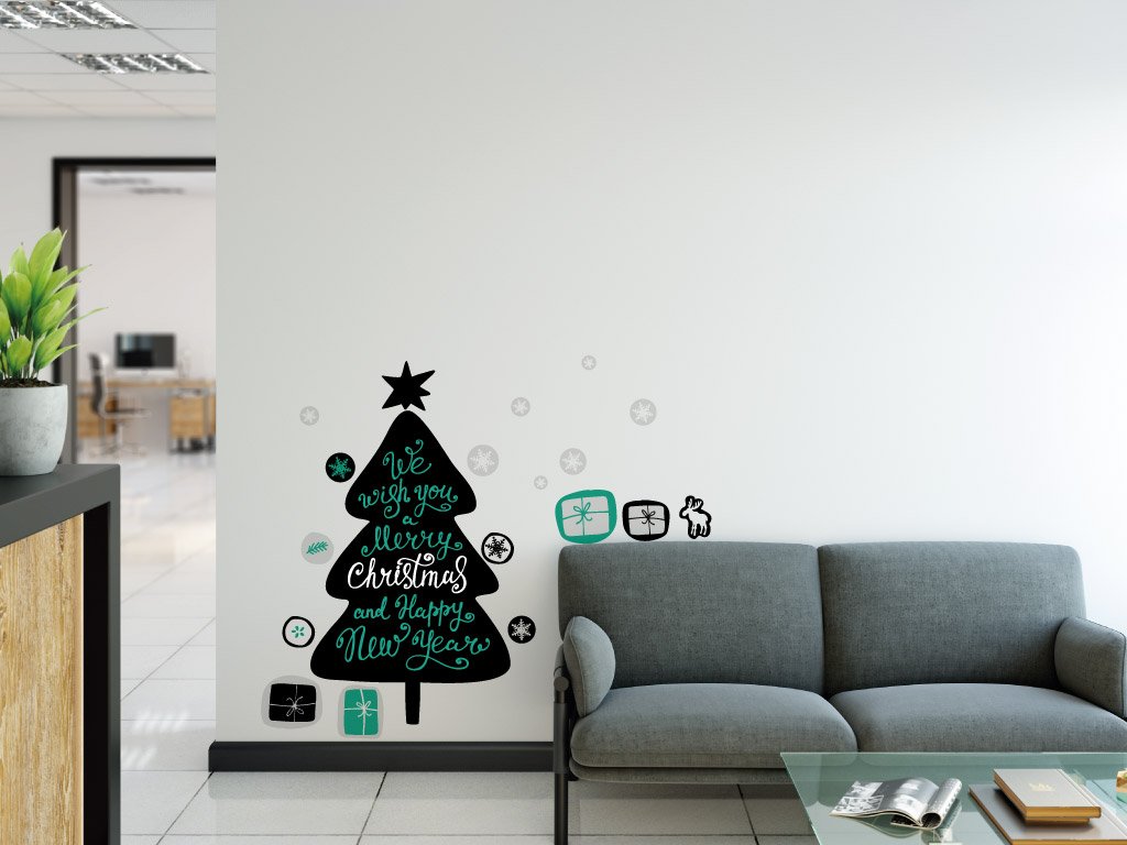 Samolepka na zeď - Vánoční stromeček Scandi Xmas přemístitelný