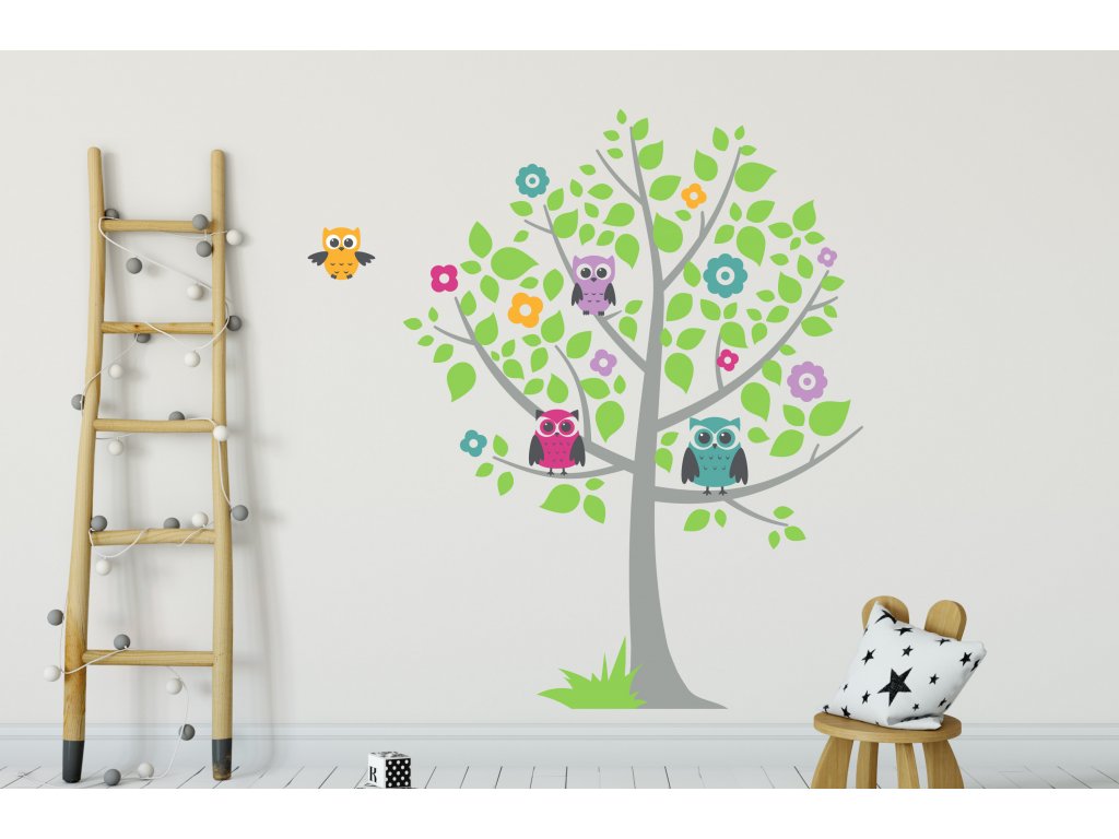 Samolepky na zeď- Strom a sovy