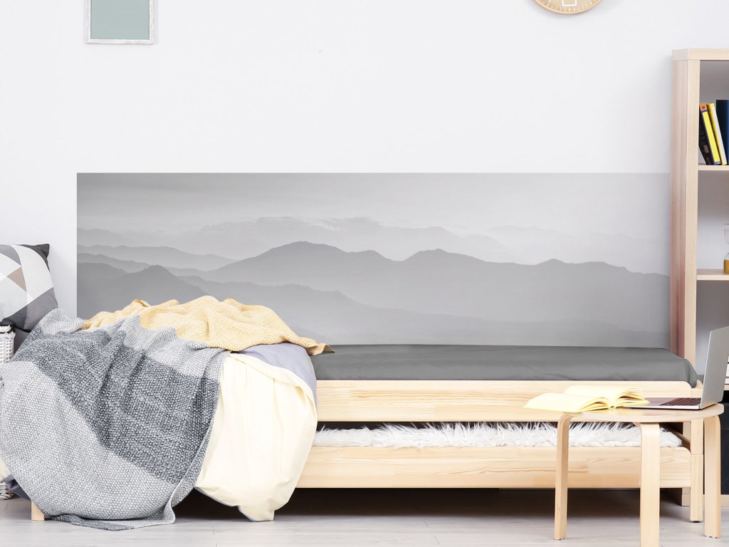 Tapeta za postel - Hory v mlze grey - pomačkané